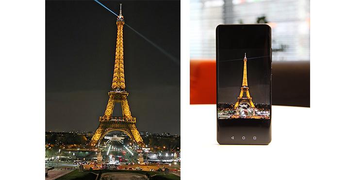 Testem dla możliwości aparatu są zdjęcia nocne. W modelu P30 Pro producent zastosował sensor SuperSpectrum, który wychwytuje więcej światła. Czułość ISO w trybie automatycznym wynosi nawet 410 tys. – parametr ten jest prawie 4-krotnie wyższy niż w poprzednim modelu Huawei P20 Pro. Co to oznacza w praktyce? Zdjęcia nocne są prawie doskonałe. Zobaczcie, jak wygląda zdjęcie wieży Eiffla nocą, widzianej z Placu Trocadero (odległość w prostej linii to ok 700 m).