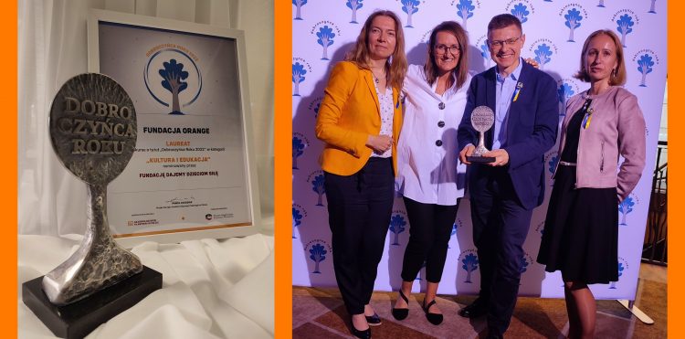 Kolejne wyróżnienie dla nas za działania społeczne. Fundacja Orange otrzymała tytuł Dobroczyńcy Roku 2022. To najważniejszy laur za wysokie standardy społecznego zaangażowania przedsiębiorstw w Polsce.