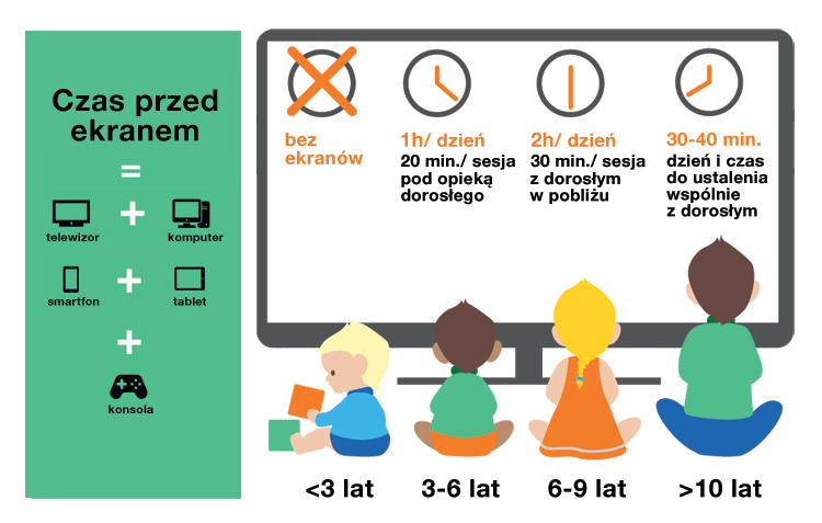 Zalecenia Amerykańskiej Akademii Pediatrii mówią, że dzieci do 2. r.ż. nie powinny mieć do czynienia z ekranami. My mówimy nawet bardziej rygorystycznie – do wieku 3 lat. A i potem przez określony czas i pod opieką dorosłych.