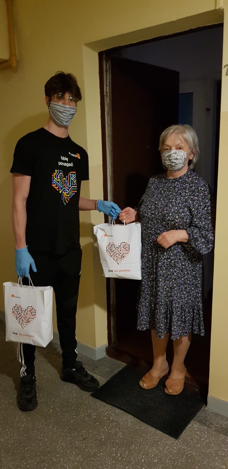 Po krótkiej naradzie postanowili przygotować 60 paczek żywnościowych dla szczególnie potrzebujących pomocy seniorów. Zespół zrobił listę osób, ich potrzeb, zamówił artykuły i spakował do toreb. Wsparcie otrzymali od Fundacji Orange. Każda paczka składała się z: masła, mleka, mąki, cukru, kaszy, ryżu, makaronu, miodu, masła orzechowego, czekolady, ser żółtego, szynki, pasztetu, kawy i herbaty. Następnym krokiem były spotkania przy drzwiach domów seniorów, zachowując środki bezpieczeństwa.