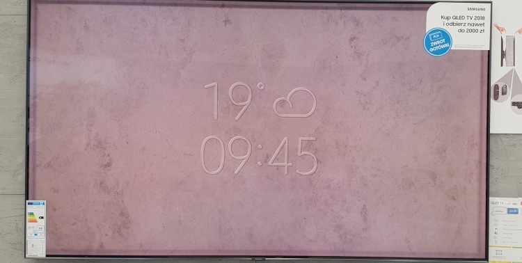Oczywiście poza oglądaniem filmów (nie tylko z TV, dostępne są też wszystkie możliwe aplikacje VOD) nowoczesne telewizory to też elementy inteligentnego domu. Nie inaczej jest w przypadku Q6FN, który może nawet udawać… ścianę, albo obraz Rembrandta. Po powieszeniu go na ścianie (u nas niestety stał na stole) tryb Ambient Mode pozwala na wyświetlanie zdjęć, dzieł sztuki, czy też ściany właśnie, przy założeniu, że wcześniej sfotografujemy przestrzeń za urządzeniem. W efekcie zobaczymy wyświetlany na „ścianie” zegar, prognozę pogody, czy wiadomość pop-up z innego inteligentnego urządzenia.