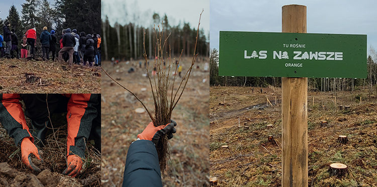 Przechodząc na e-fakturę, kupując eko-akcesoria, biorąc udział w akcji świątecznej i przekazując niewykorzystane GB w aplikacji Orange Flex sprawiliście, że właśnie posadziliśmy kolejne ponad 5,5 ha bioróżnorodnego lasu. Rośnie w Kramkówce Dużej i Kuleszach na Podlasiu. Naszym partnerem jest Fundacja Las Na Zawsze.