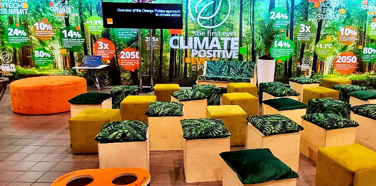 Zorganizowaliśmy także „zieloną strefę”, w której opowiadaliśmy o naszej strategii, usługach i działaniach klimatycznych. Mam na myśli m.in. Orange Flex – pierwszą w Polsce neutralną klimatycznie usługę telekomunikacyjną i czystą energię oraz fotowoltaikę od Orange Energia. Zaprosiliśmy tez zaprzyjaźnione organizacje pozarządowe: Fundację Las Na Zawsze, Fundację Dziedzictwo Przyrodnicze, Centrum UNEP-Grid Warszawa i Kampanię 17. Celów, do zaprezentowania swoich działań na rzecz ochrony środowiska, klimatu i Celów Zrównoważonego Rozwoju.