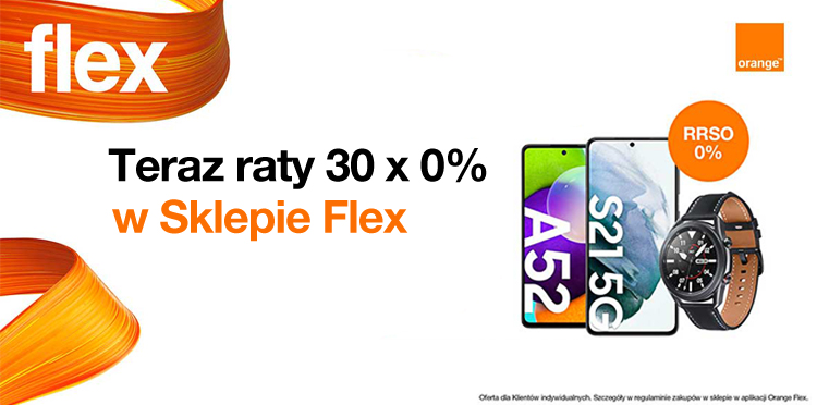 Oferta ratalna w Orange Flex to bardzo dobra okazja na upolowanie sprzętów, o których zakupie marzyło się od dawna. Klienci indywidualni Flexa mogą skorzystać z 30 rat 0% z RRSO 0%. Warto dodać, że raty obowiązują na cały koszyk o wartości powyżej 300 zł.