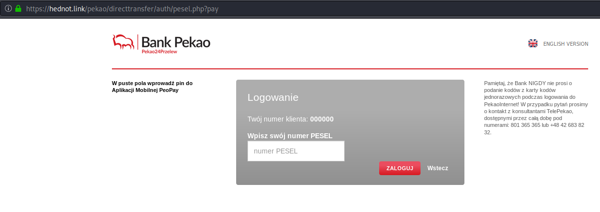 nie musimy logować się do banku, a tym bardziej podawać numeru PESEL!