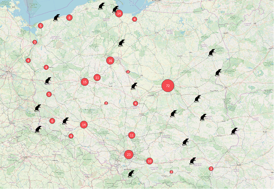 Wyzwaniem jest projektowanie sieci, aby od razu minimalizować ryzyko. Pierwszą pomocą okazuje się mapa pokazująca największe skupiska gryzoni w Polsce. Nawet nie wiedziałem, że taka istnieje.