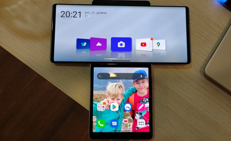 I Brzydkie Kaczątko stało się łabędziem! Sami przyznacie, że czegoś takiego jeszcze nie było. Obok głównego, 6,8-calowego P-OLEDa, który nagle z pionowego staje się poziomym, pojawia się drugi, kwadratowy G-OLED o przekątnej 3,9”. Komórkowy multitasking w totalnie nowej odsłonie. Wiem, brzmi jak kiepskie hasło marketingowe. Ale po opisanym na wstępie wybuchu śmiechu, gdy później dostałem LG Wing do rąk i spędziłem z nim trochę czasu…