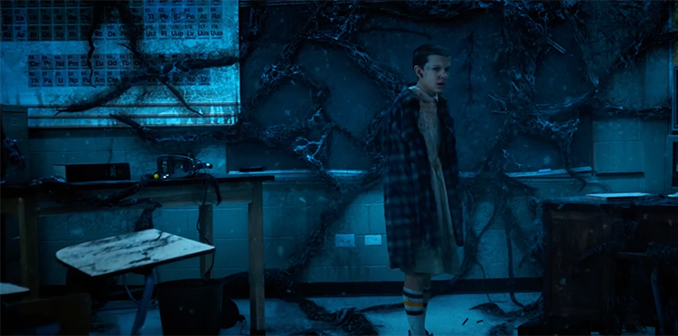 Jego matka kontaktuje się z nim za pomocą lampek świątecznych, rozwieszonych na ścianie starego mieszkania, a Nancy (siostra Mike’a) wraz z Jonathanem (bratem Willa) przemierzają lokalne lasy odkrywając, że jej przyjaciółka nie żyje.
