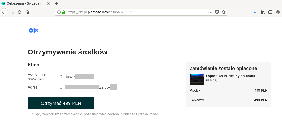 Przestępcy – co już kilkakrotnie tutaj i na stronie CERT Orange Polska, opisywaliśmy – automatycznie skanują serwisy, rejestrując nowe oferty sprzedaży. W kolejnym kroku „żywy” oszust wybiera ofiarę i w swoim panelu generuje fałszywy link do oferty. Miałem kiedyś możliwość spojrzeć na taki interfejs administracyjny. Nie mogę jednak wrzucić nawet zrzutu ekranu – lepiej, by oszuści nie wiedzieli czy/gdzie mamy taki dostęp. W każdym razie po zalogowaniu wystarczy wkleić link do prawdziwej oferty, by wygenerować bliźniaczą stronę, a gdy tylko ofiara da się oszukać – w tym samym miejscu wyświetlają się wszystkie wyłudzone dane.