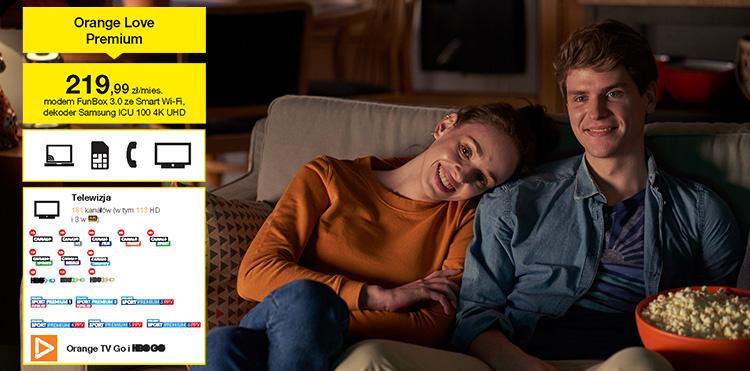 Ponad 950 tys. Polaków ma telewizję od Orange. Nasze upodobania co do tego jak oglądamy telewizję bardzo się różnią. Jedni oglądają ją wieczorami, inni tylko w weekendy, jedno chętniej na smartfonie a drudzy wolą na telewizorze. Jednak potrzeby mamy podobne: jak najwięcej telewizji w dostępnych pakietach. Dlatego nowe pakiety Orange Love spodobają się tym, którzy cenią szeroki wybór atrakcyjnych treści. A jeszcze jakby do tego był internet bez ograniczeń, to już w ogóle super. I taka jest właśnie nowa oferta Orange Love Premium.
