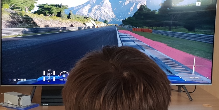 Najpierw parę zdań o ogólnym wrażeniu, jeszcze bez podłączenia telefonu. Przez lata używałem konsol poprzedniej generacji i uruchomienie dynamicznej „samochodówki”, zoptymalizowanej do HDR powoduje, że szczęka opada. Literalnie. Kolory, kształty, ostrość, naturalność, światłocienie – WOW.